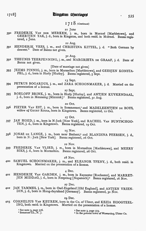 SOURCE: Baptismal and marriage registers of the Old Dutch Church of Kingston : Ulster County, New York, 1660-1809 Kingston Marriage Register page 535; Ancestry.com