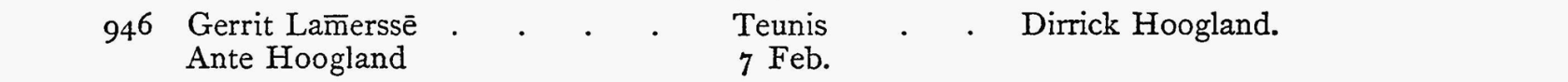 - Theunis Terpenning baptized 7 February 1697 to Gerrit Lamersse and Ante Hoagland DIRECT LINE ANCESTOR