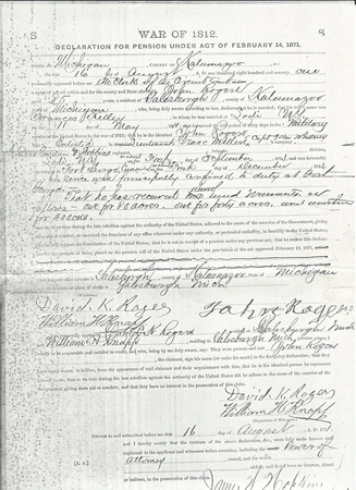 - Locate the War of 1812 pension application folder. Perhaps in National Archives?