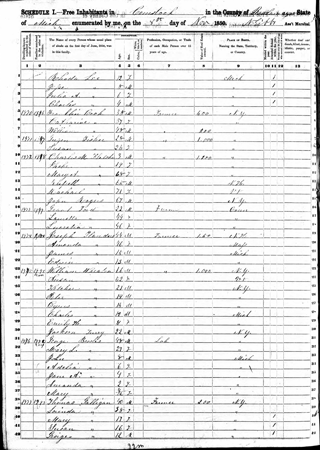 SOURCE: 1850 US Federal Census; Comstock, Kalamazoo, Michigan; Roll: M432_352; Page: 138B; Image: 275; FHL film from The National Archives; Ancestry.com