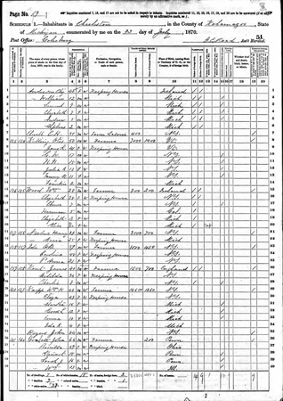 SOURCE: 1880 US Federal Census; Comstock, Kalamazoo, Michigan; Enumeration District: 129