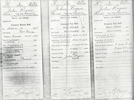 - Locate more War of 1812 documents for our John Rogers, particularly location of enlistment