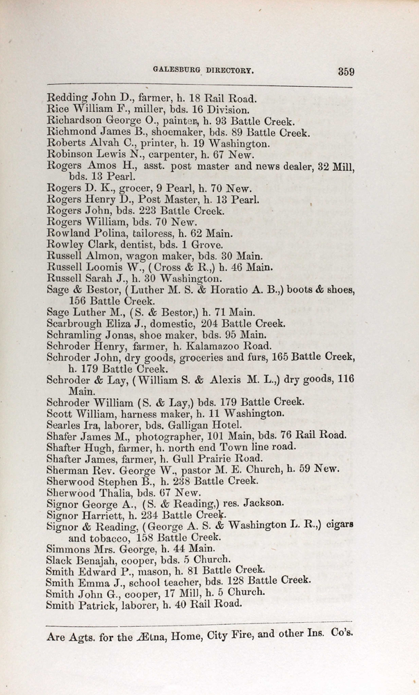 1869 City Directory Galesburg, Kalamazoo, Michigan