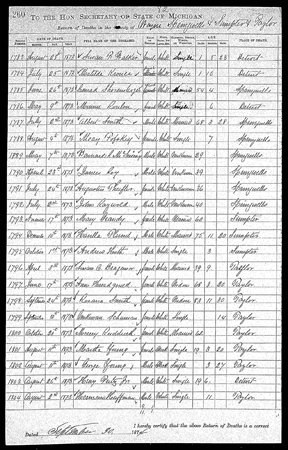 SOURCE: State of Michigan Death Records FHL film 2363453, page 278 line 1797; Family Search
