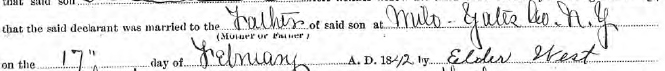 The above document reports that marriage was performed by an Elder West. Research finds an Elder West was a Baptist minister in this area at that time.