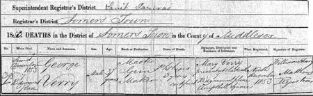Death Registration for George Verry 9 December 1853