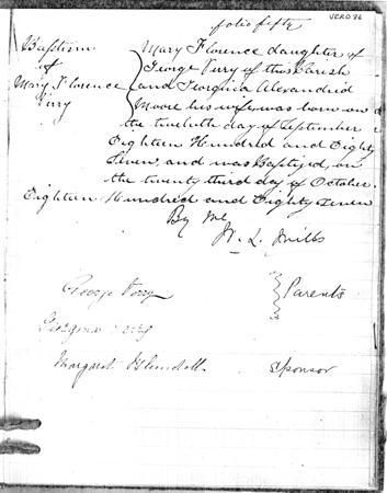 SOURCE: Trinity Chapel record of baptism for Mary Florence Verry